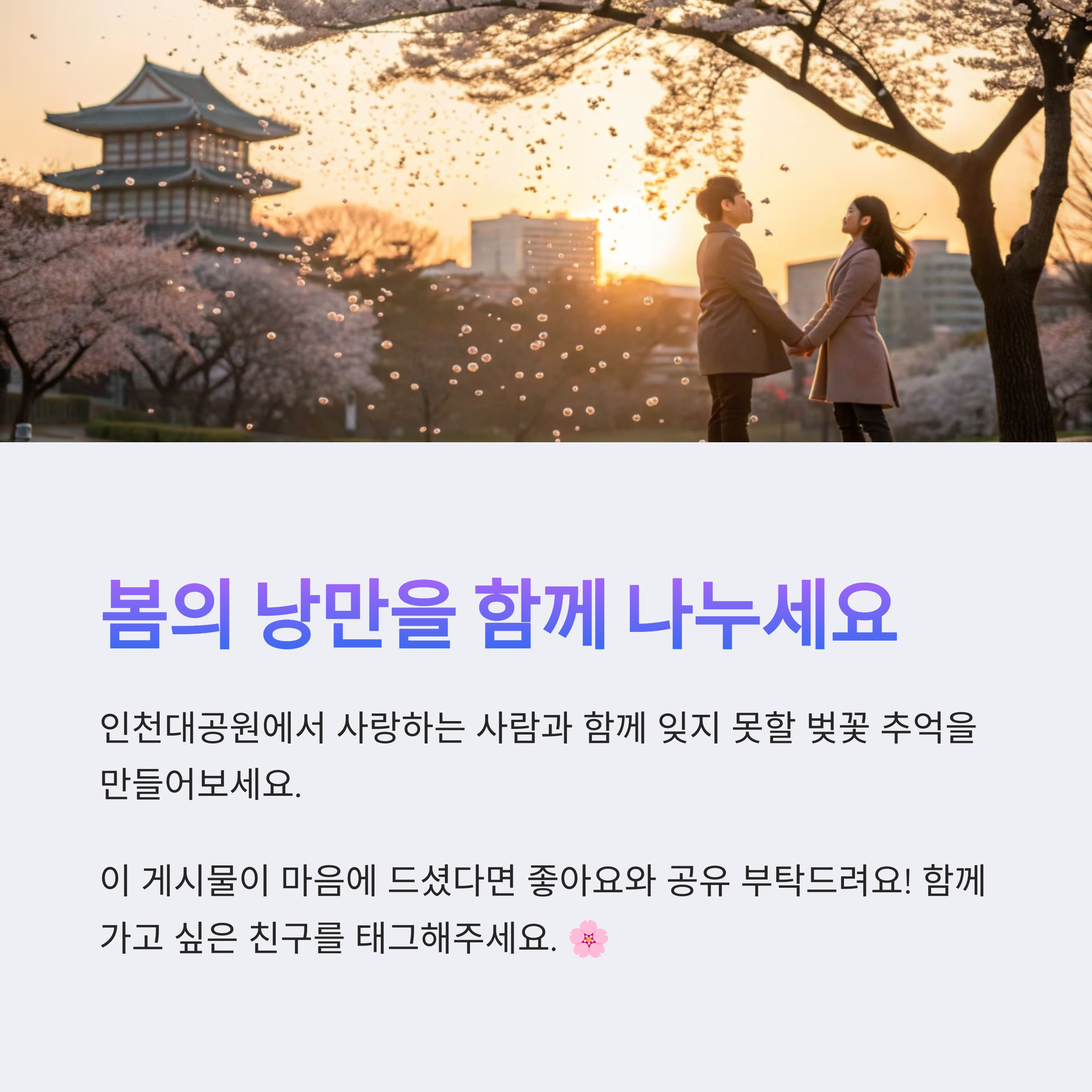 살랑이는 봄바람 따라 흩날리는 벚꽃 향연, 인천대공원에서 낭만적인 봄을 만끽하세요! (2025년 벚꽃 개화 시기 및 데이트 명소 추천)